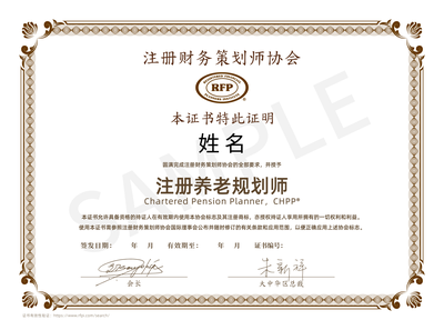 RFP注册养老规划师(CHPP®)是由美国RFP协会(Registered Financial Planners Institute)授权认证的,面向从事养老规划工作相关人士设计的专业水平鉴定。