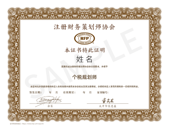 “RFP个税规划师”认证作为专业资质的象征,能够提升从业者的市场认可度与品牌影响力,获得国际认可的税务规划专业资质,增强在财富管理领域的权威背书,拓展高净值客户资源与职业发展空间。